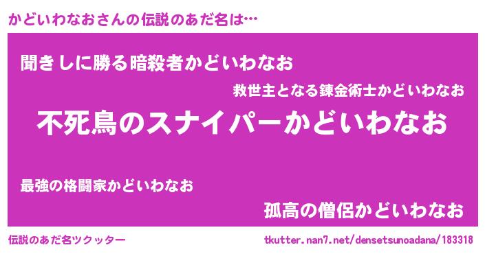 | ヒーロー風カッコイイあだ名 | 『サイバー戦士カドイワナオ』 |