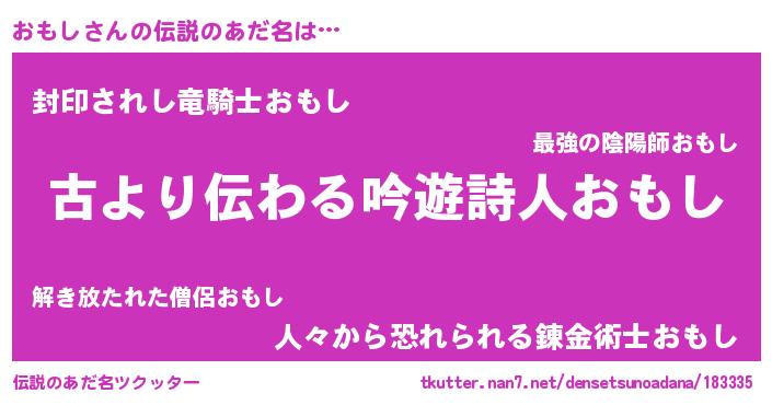 | ヒーロー風カッコイイあだ名 | 『ネオオモシ』『究極戦士オモシ』 |