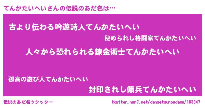 | 意味不明あだ名 | 『自称てんかたいへい』 |