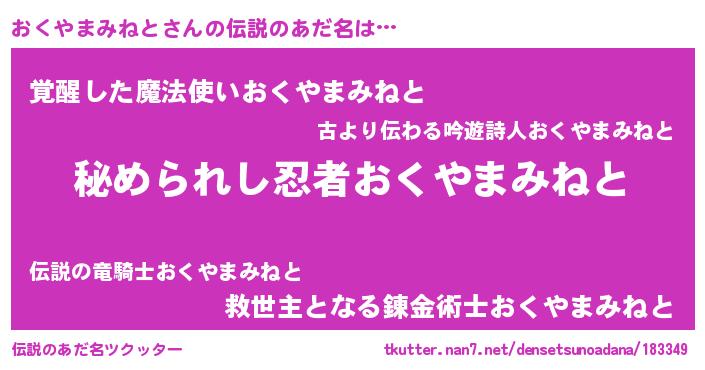 | 料理風あだ名 | 『おくやまみねとのカルパッチョ風』 |