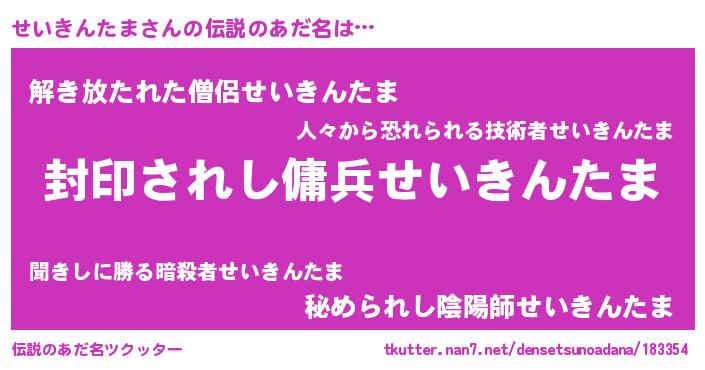 | ヒーロー風カッコイイあだ名 | 『スーパーセイキンタマ』『魔戒騎士セイ』 |