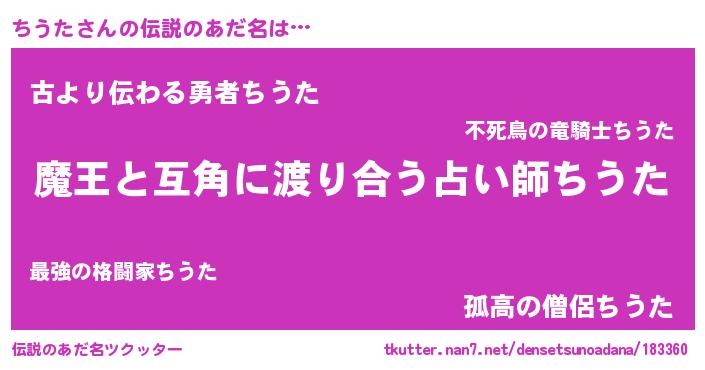 | ヒーロー風カッコイイあだ名 | 『愛の使者ちうた』『ネオチウタ』 |