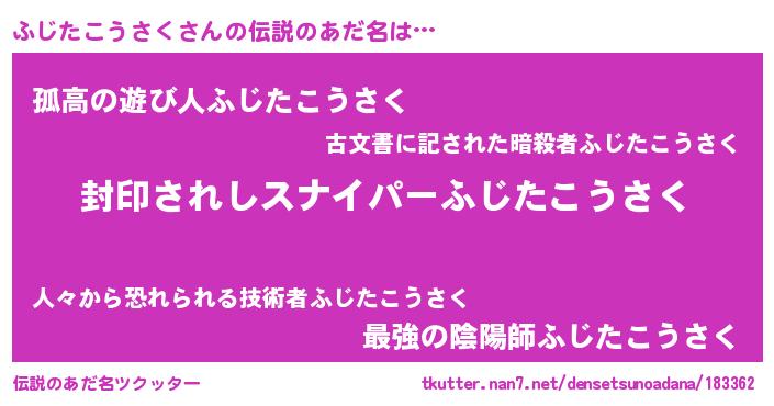 | 胡散臭い通販商品みたいなあだ名 | 『あなたにだけ特別に提供する世界で10本だけ現存している希少なブランデー…その名も「ふじたこうさく」』 |