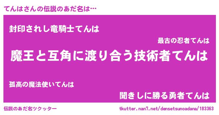 | ヒーロー風カッコイイあだ名 | 『愛の使者てんは』『最強戦士テンハ』 |