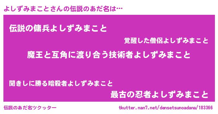 | ヒーロー風カッコイイあだ名 | 『慈愛の使者よしずみまこと』 |