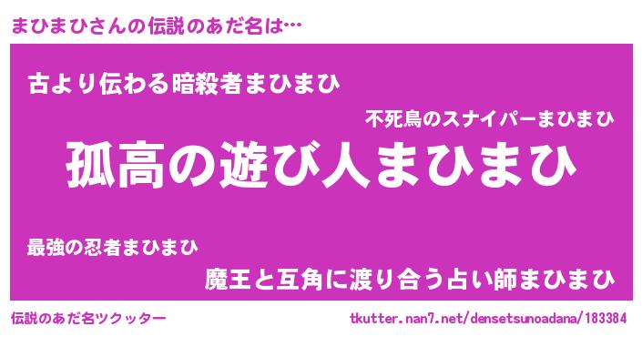 | 意味不明あだ名 | 『しいたけ科まひまひ属』『自称まひまひ』 |