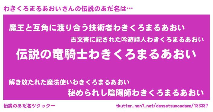 | 意味不明あだ名 | 『自称わきくろまるあおい』 |