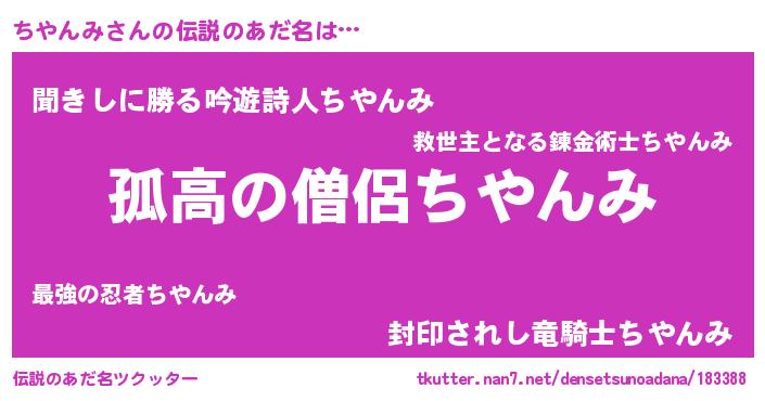 | 意味不明あだ名 | 『住所不定無職ちやんみ(62歳)』 |