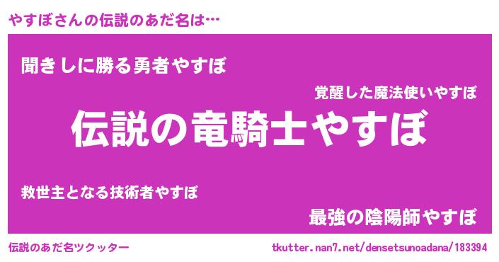 | 男性向けラノベタイトル風あだ名 | 『緋弾のヤスボ』『やすぼの憂鬱』 |