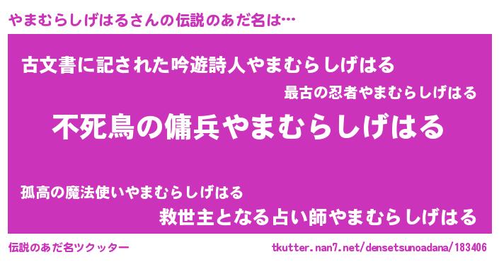 | 胡散臭い通販商品みたいなあだ名 | 『モテモテ間違いなし水晶球…その名も「やまむらしげはる」』 |