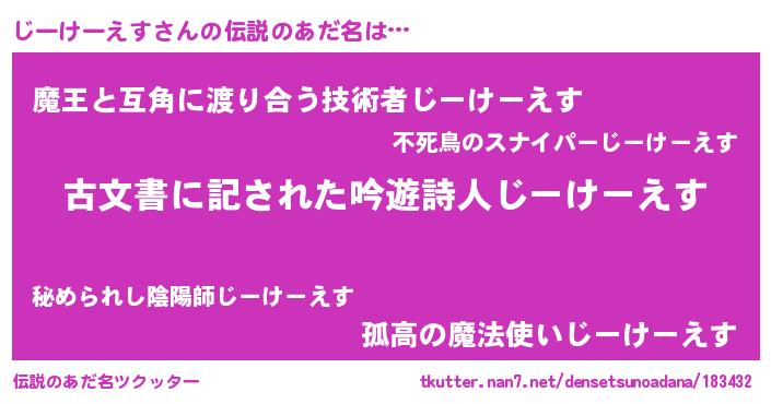 | 意味不明あだ名 | 『住所不定無職じーけーえす(12歳)』 |