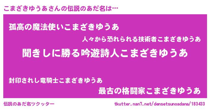 | ヘコむあだ名 | 『こまざきゆうあ(笑)』『こまっぺ』 |