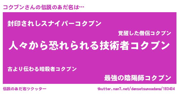 | ヒーロー風カッコイイあだ名 | 『正義の使者コクブン』『幻影騎士コク』 |