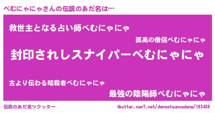 | 意味不明あだ名 | 『住所不定無職べむにゃにゃ(79歳)』 |