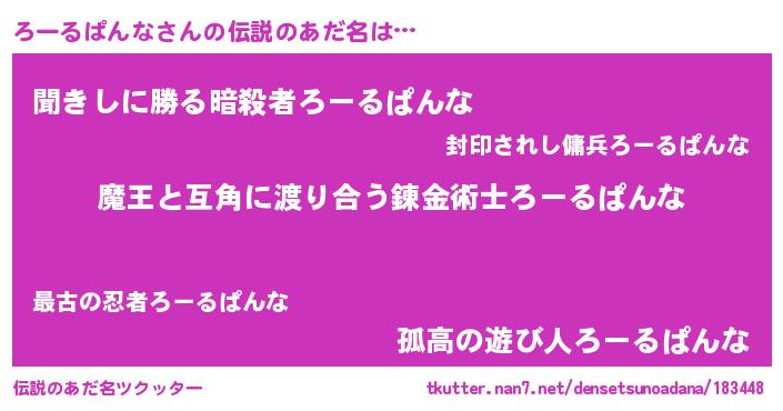 | 男性向けラノベタイトル風あだ名 | 『転生したらろーるぱんなだった件』 |