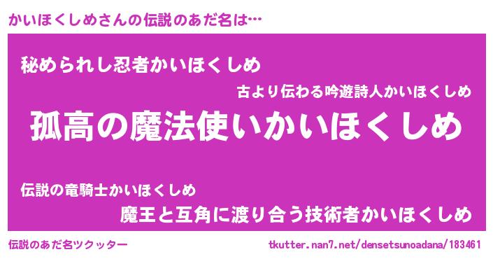 | 胡散臭い通販商品みたいなあだ名 | 『信頼と実績のサプリメント…その名も「かいほくしめ」』 |