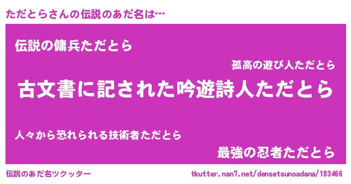 | ヒーロー風カッコイイあだ名 | 『ネオタダトラ』『スーパータダトラ』 |