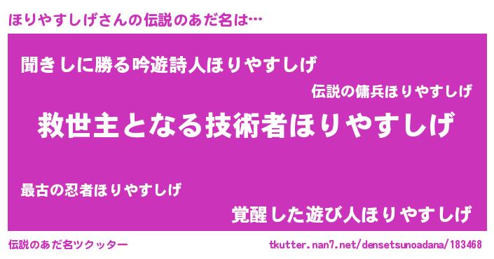 | 意味不明あだ名 | 『自称ほりやすしげ』 |