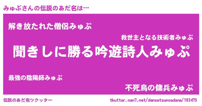 ヘコむあだ名 | 『みゅぷ(小並感)』『みゅ太郎』 |