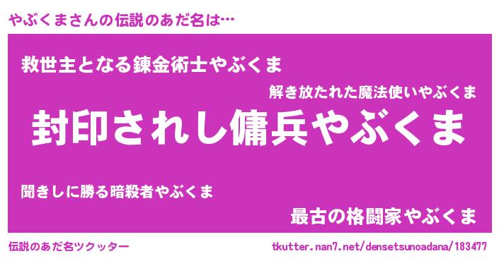 | ヒーロー風カッコイイあだ名 | 『スーパーヤブクマ』『幻影騎士ヤブ』 |