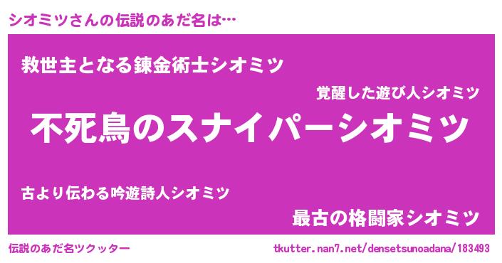 | ファンタジー風あだ名 | 『シオフェル』『クインシット』 |