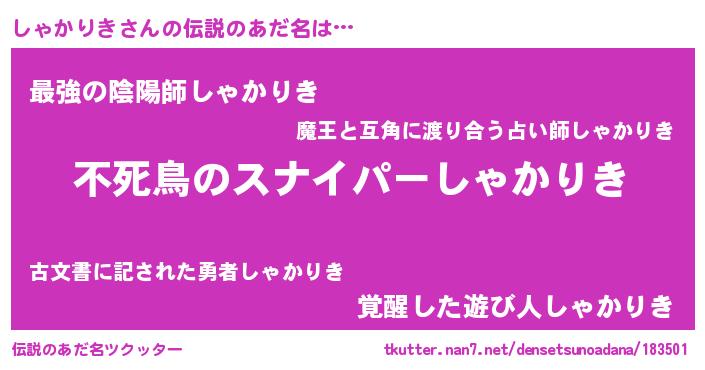 | 意味不明あだ名 | 『ペロリンしゃかりき』『自称しゃかりき』 |