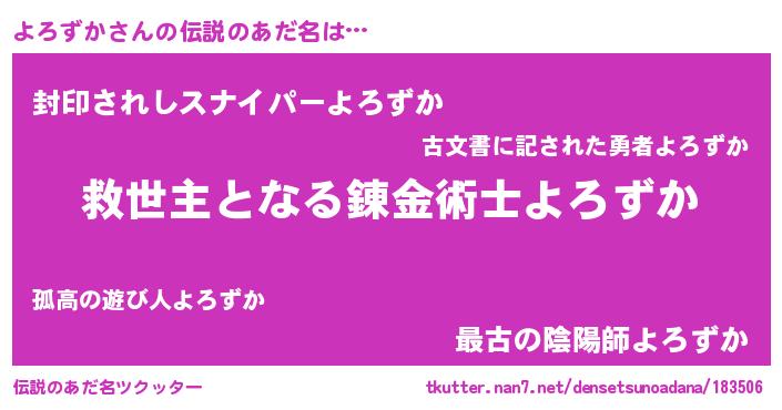 | 意味不明あだ名 | 『眠気覚ましガムよろずか味』 |