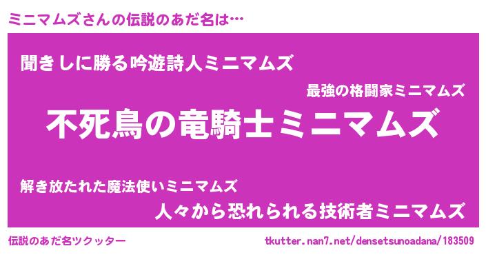 | 女子向けラノベタイトル風あだ名 | 『ミニマムズ姫と円卓の騎士』 |