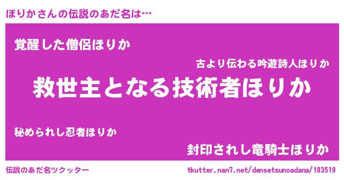| ヒーロー風カッコイイあだ名 | 『天空の使者ほりか』『天弓騎士ホリ』 |