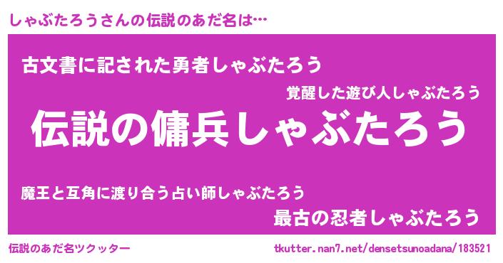 | 男性向けラノベタイトル風あだ名 | 『しゃぶたろうの憂鬱』 |