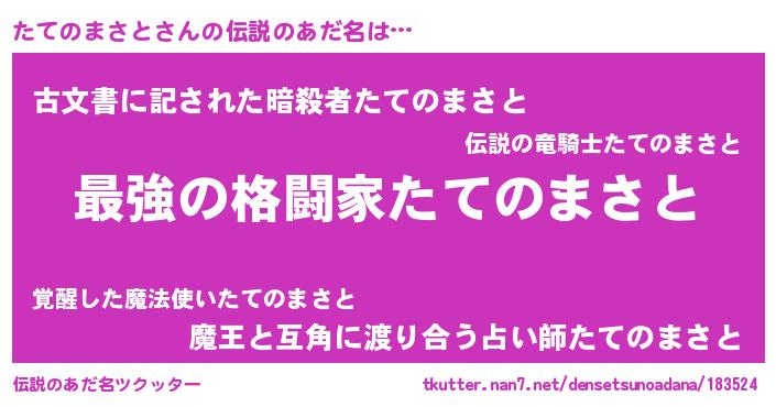 | ヒーロー風カッコイイあだ名 | 『最強戦士タテノマサト』『仮面タテダー』 |