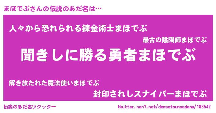 | 胡散臭い通販商品みたいなあだ名 | 『絶対に幸福をもたらす水素水…その名も「まほでぶ」』 |