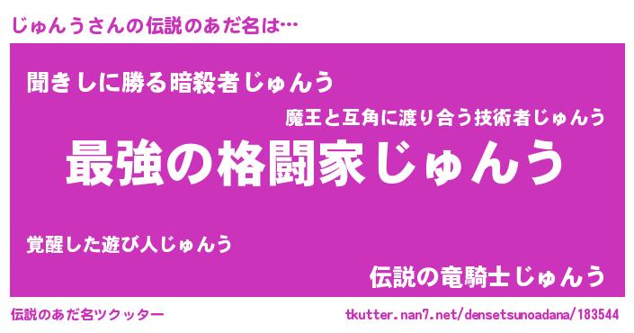 | 意味不明あだ名 | 『じゅんうフォーエバー』 |