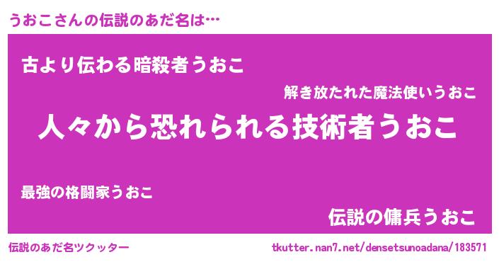 | 男性向けラノベタイトル風あだ名 | 『おまえをオタクにしてやるから、俺をうおこにしてくれ! 』 |