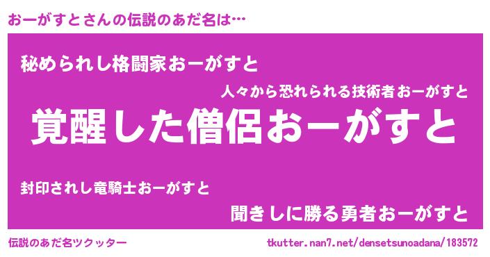 | 男性向けラノベタイトル風あだ名 | 『おーがすと~年齢イコール彼女いない歴の魔法使い~』 |