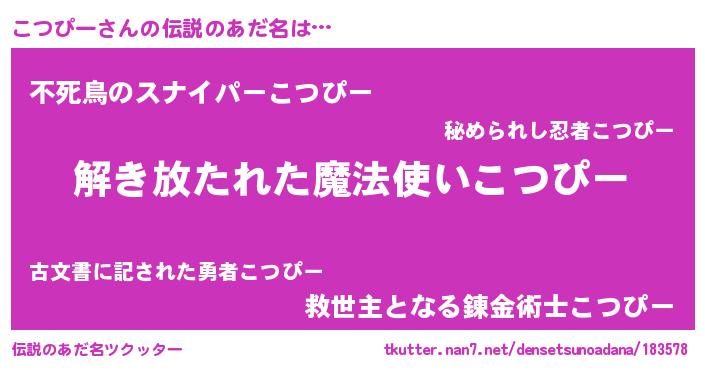 | 男性向けラノベタイトル風あだ名 | 『転生したらこつぴーだった件』 |