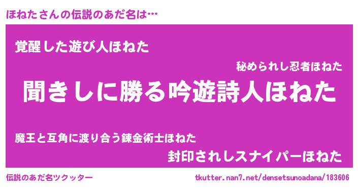 | 男性向けラノベタイトル風あだ名 | 『ほねたという概念が存在しない退屈な世界 』 |
