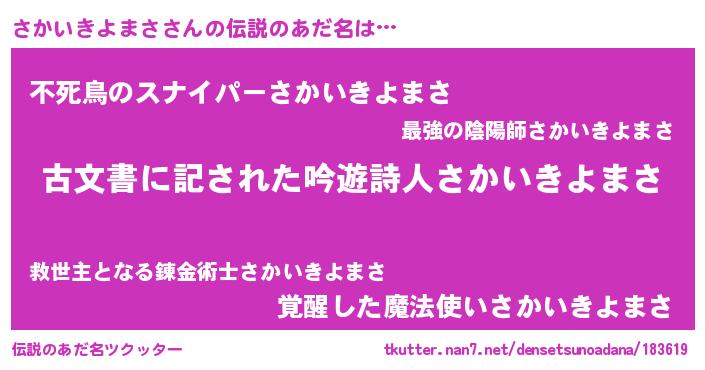 | 意味不明あだ名 | 『永久保存さかいきよまさ』 |