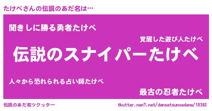 | ヒーロー風カッコイイあだ名 | 『スーパータケベ』『サイバー戦士タケベ』 |