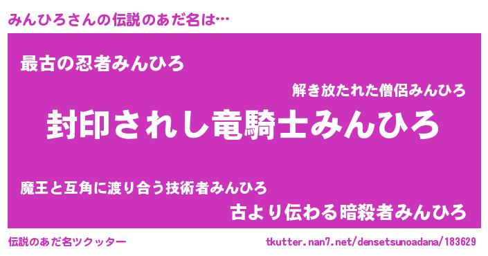 | 男性向けラノベタイトル風あだ名 | 『Re:みんひろから始める異世界生活』 |