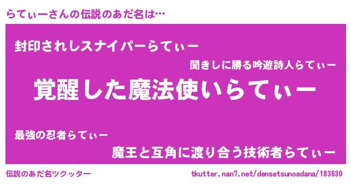 | 男性向けラノベタイトル風あだ名 | 『らてぃー~年齢イコール彼女いない歴の魔法使い~』 |