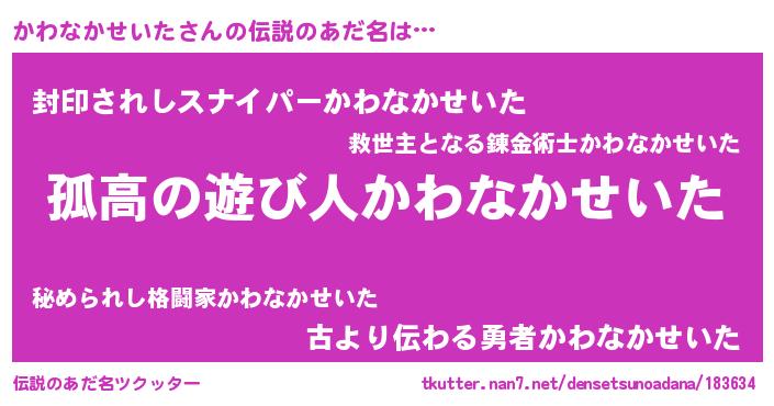 | 意味不明あだ名 | 『自称かわなかせいた』 |