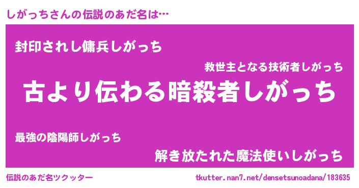| ヘコむあだ名 | 『しがっち(苦笑)』『しがもー』 |