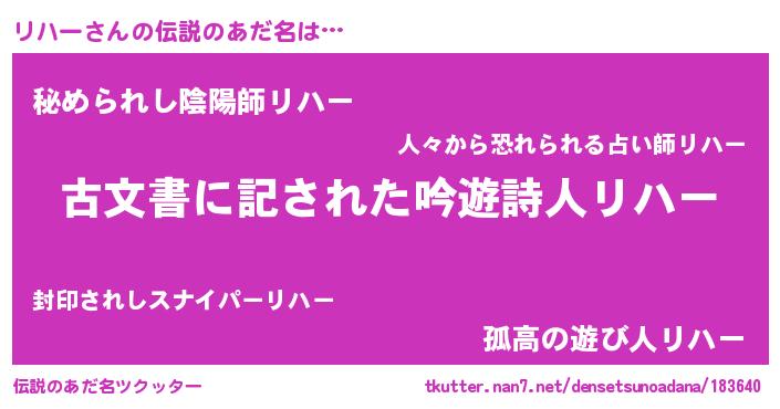 | ヒーロー風カッコイイあだ名 | 『ネオリハー』『ウルトラリハーマン』 |