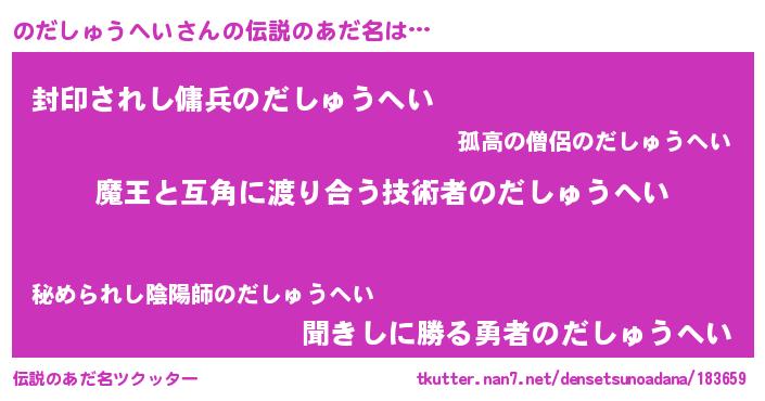 | ヒーロー風カッコイイあだ名 | 『慈愛の使者のだしゅうへい』 |