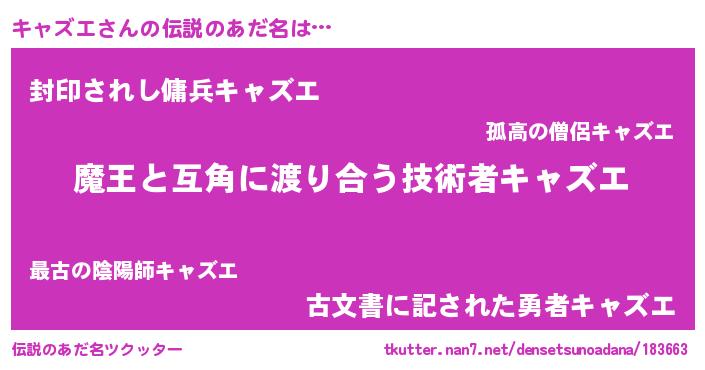 | ヒーロー風カッコイイあだ名 | 『サイバー戦士キャズエ』『ネオキャズエ』 |