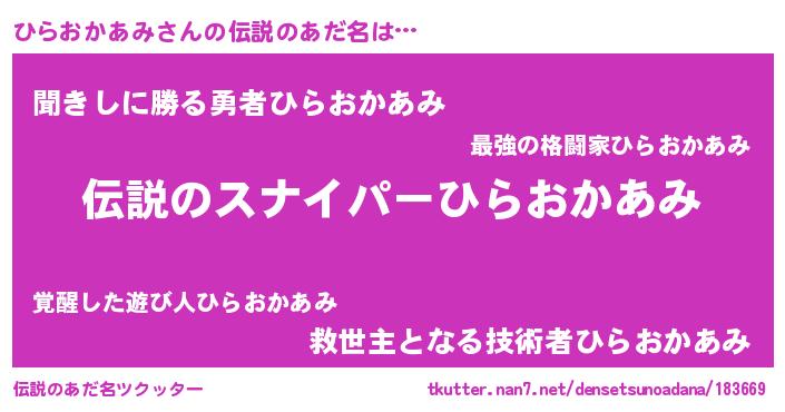 | 胡散臭い通販商品みたいなあだ名 | 『必ず成功する霊験あらたかなお札…その名も「ひらおかあみ」』 |