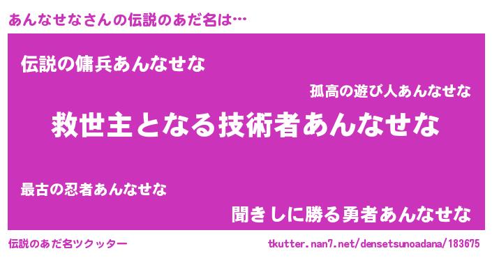 | 男性向けラノベタイトル風あだ名 | 『うちのあんなせなが世界を掌握している!』 |