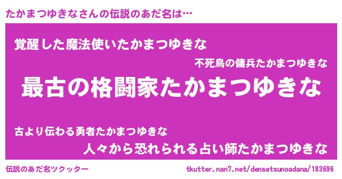 | 意味不明あだ名 | 『住所不定無職たかまつゆきな(13歳)』 |