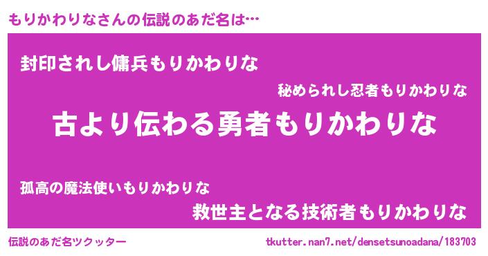 ヒーロー風カッコイイあだ名 | 『ネオモリカワリナ』『仮面モリダー』 |